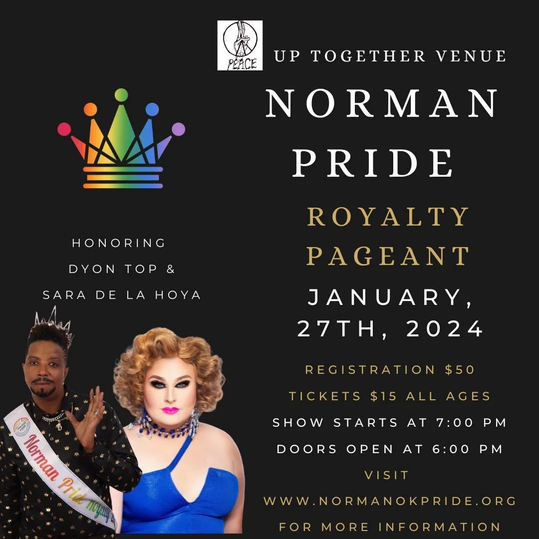 The Norman Pride Royalty Pageant is a gender-inclusive drag pageant for contestants who believe in the power and importance of community service. Join us for a fun-filled event as we crown the next contestants to showcase their Norman Pride Royalty!